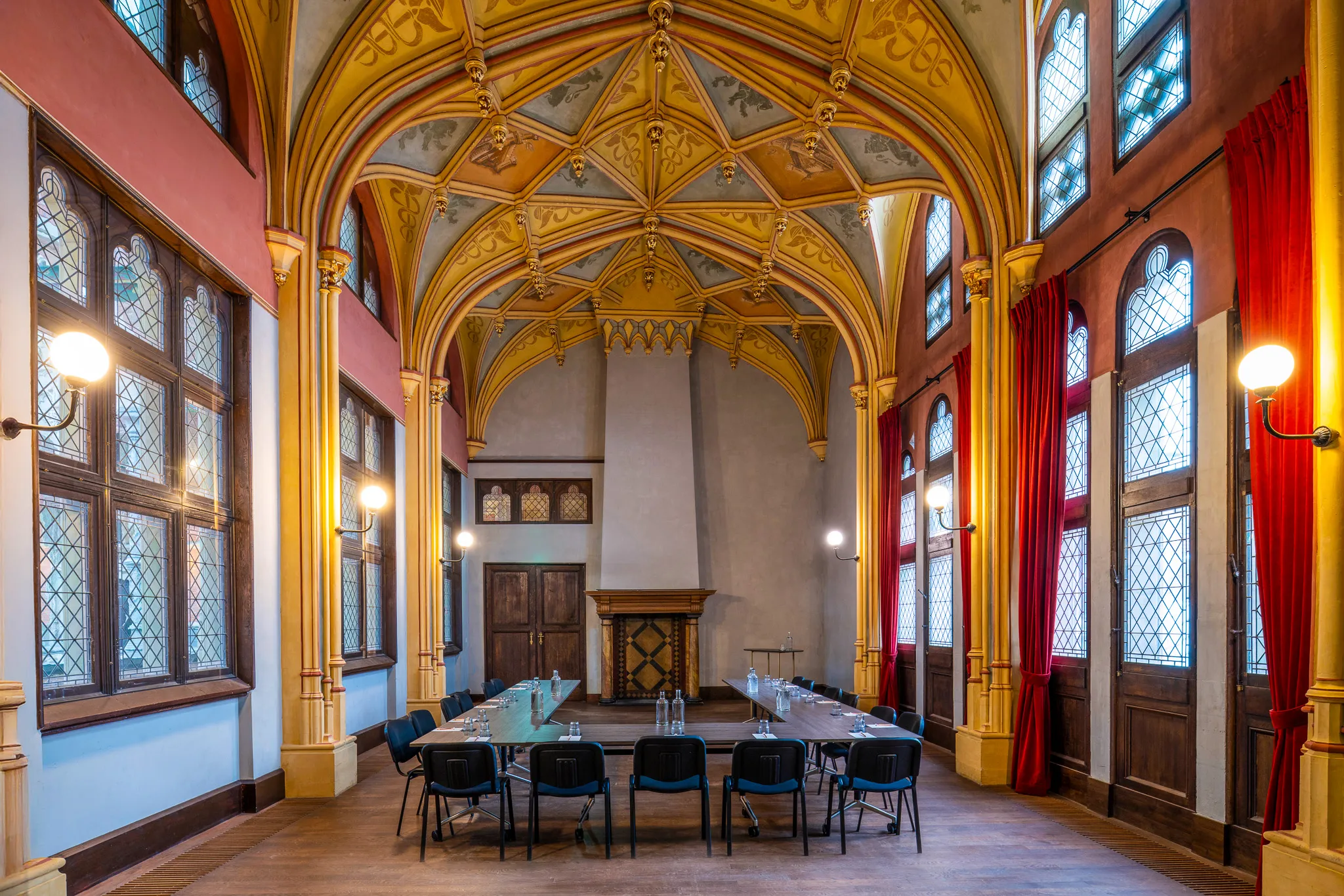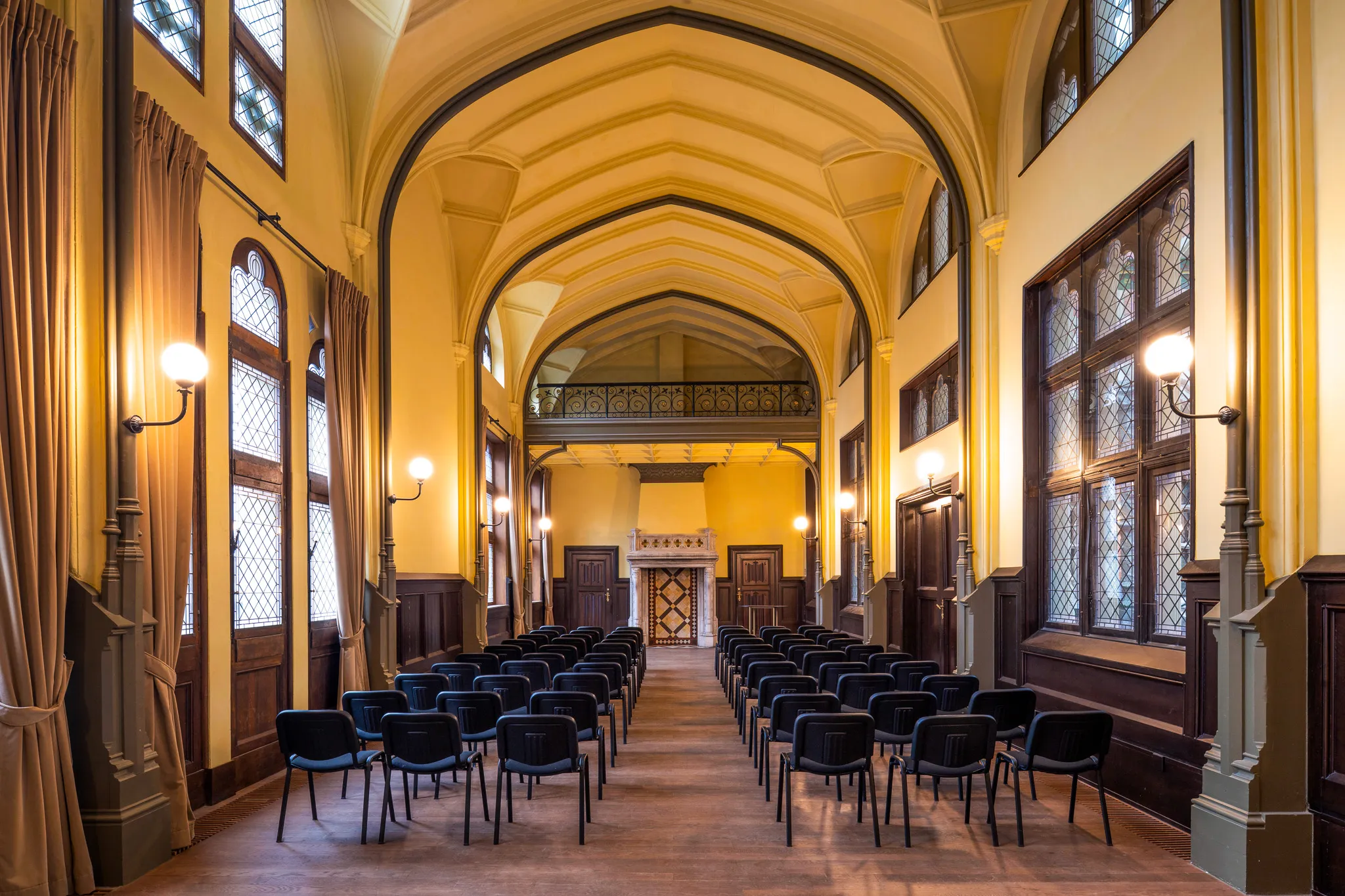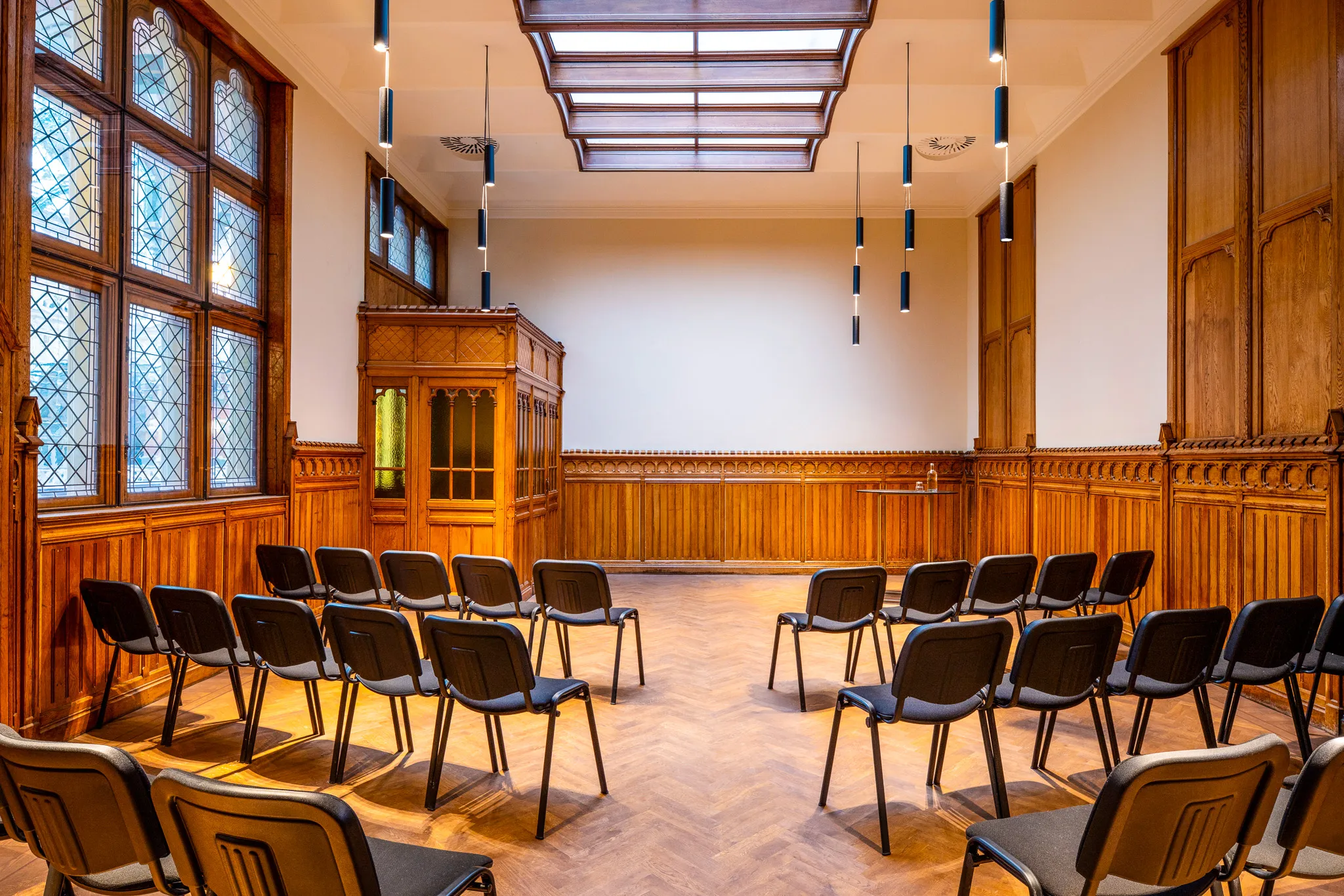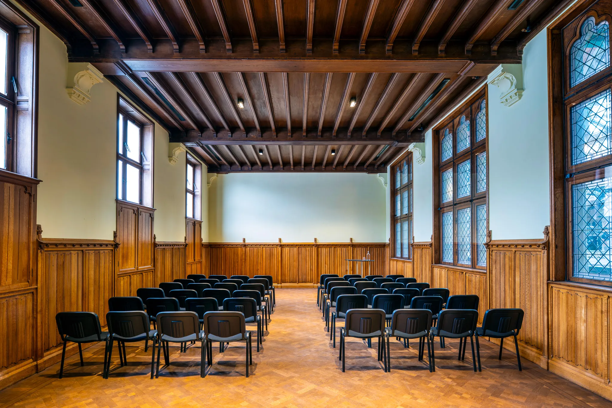 Een ruimte met allure, waar historische architectuur en hedendaagse verfijning samenkomen. Perfect voor intieme diners, strategische vergaderingen of besloten bijeenkomsten die vragen om klasse en karakter.